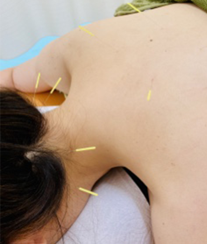 肩こりや頭重感にはり灸施術